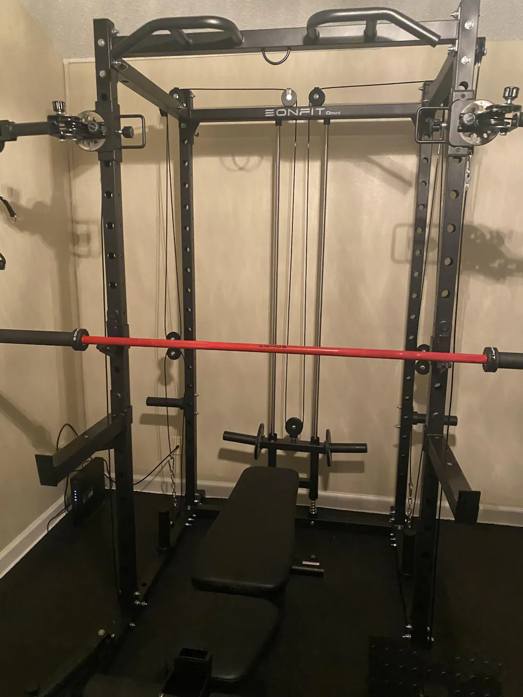 - An All Around Power rack -- No matter a beginer or professional, EONFIT E2 Power Cag functional trainer will be a great choice to you. it can provide a variety of strength training modes with different attachments to meet your training needs, like Squat, chin up, pull up, babell twist,t bar row, cable crossover, lat pulldown and etc. the only limit here is your creativity