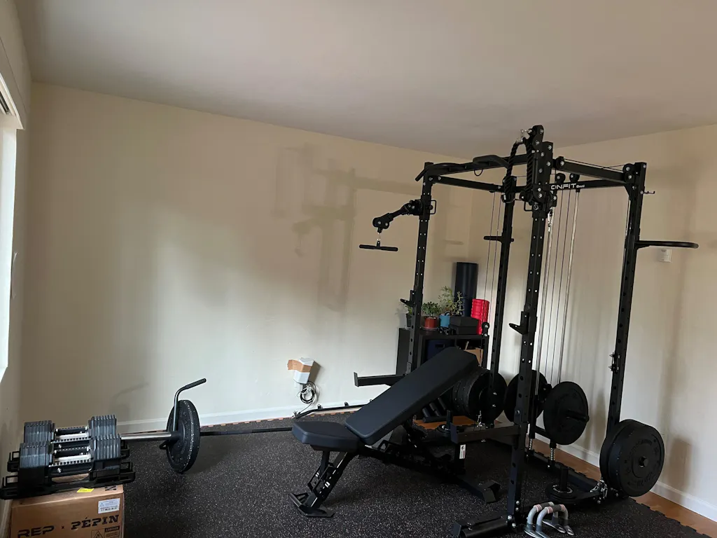 - Accessories Included -- Standard j-hooks x2, pull up bar, safety arms, dip bar, barbell hanger, weight plates storage pins x2, landmine, row feet tube,hand straps x2, lat bar, straight bar and tricep rope