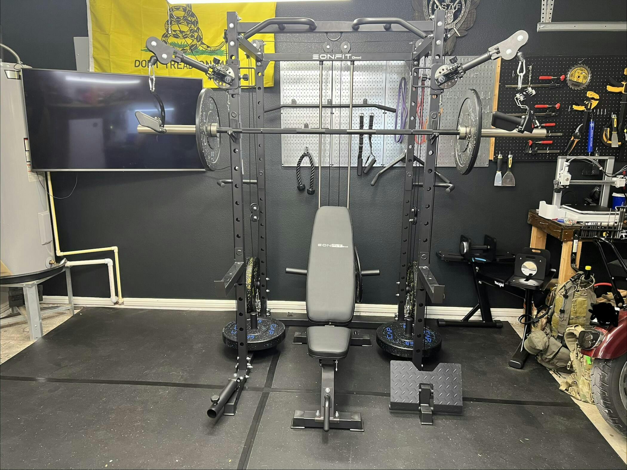 - Accessories Included -- Standard j-hooks x2, pull up bar, safety arms, dip bar, barbell hanger, weight plates storage pins x2, landmine, row feet tube,hand straps x2, lat bar, straight bar and tricep rope